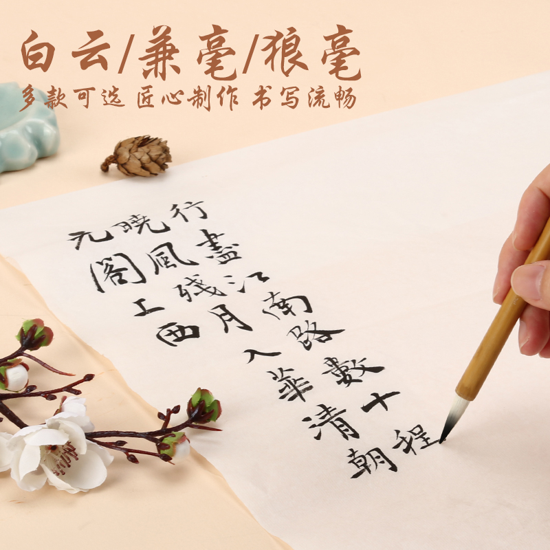 一得阁毛笔善琏湖笔兼毫羊毫毛笔套装初学者中楷小白云国画大白云毛笔加健小楷文房四宝狼毫邹氏农耕笔庄毛笔